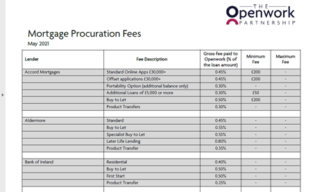 HGC Finance Mortgage Procuration Fee List